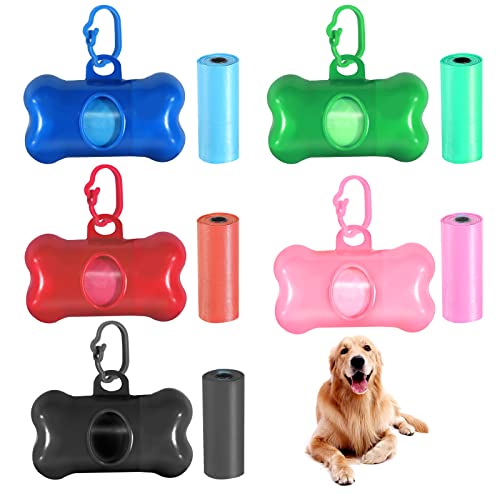 Numero di sacchetti per escrementi del cane: il set di sacchetti per escrementi del cane contiene 5 rotoli. 5 colori, 15 sacchetti per lettiera per cani. Totale 75 sacchetti per animali domestici. Dispenser incluso.