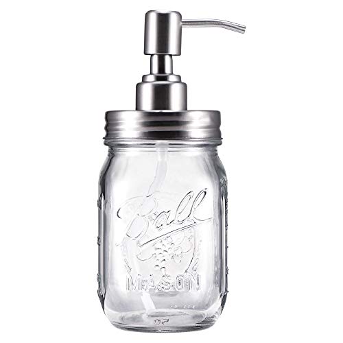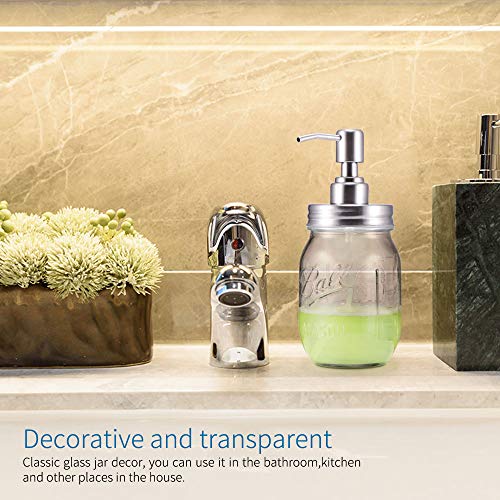 Ugello in acciaio inossidabile: Pompa in acciaio inox in acciaio inox rivestito per evitare di arrugginire, dispenser di sapone per barattolo, con ugelli e coperchi in acciaio inox, questo dispenser di sapone renderà la distribuzione molto facile e fornisce prestazioni di lunga durata.