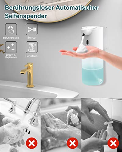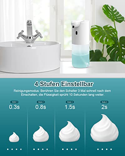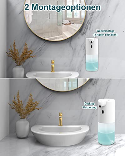 Dispenser Sapone Automatico, aifulo Dispenser Sapone Bagno a Parete, Dispenser di Sapone Schiuma con Sensore 400ml con 4 Ricarica USB Regolabile Adatto Per Cucina, Bagno