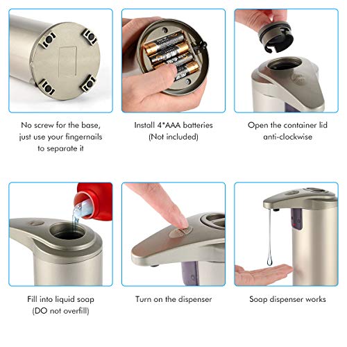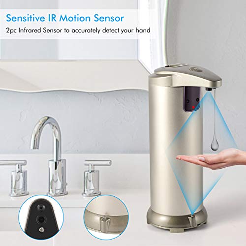 Dispenser di Sapone Automatico, Dispenser Sapone Liquido Acciaio Inox con Sensore a Infrarossi, Base Impermeabile, Interruttore Regolabile, per Cucina, Bagno, Hotel, Ristorante