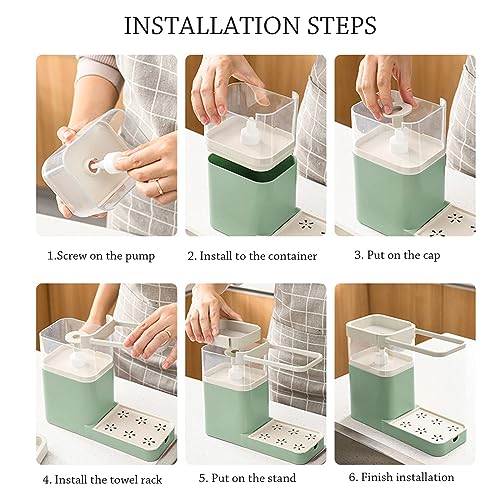 【Grande Capacità】 Il dispenser detersivo ha una capacità di 1,2 litri, quindi non è necessario riempirlo frequentemente. Adatto a molti tipi di sapone liquido. Ottimo per la gestione dello spazio e aiuta a mantenere pulita la cucina.