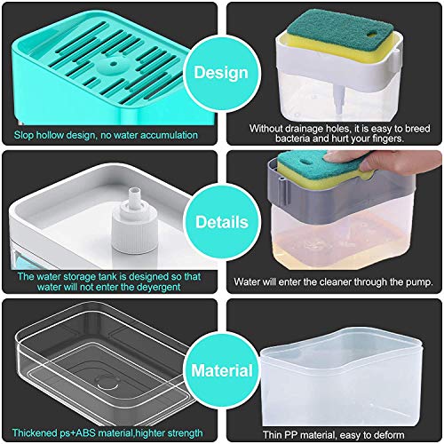COMBINAZIONE PRATICA: combina l'erogatore della pompa del sapone e il porta spugna, non solo ottenendo un effetto salvaspazio, ma prevenendo anche l'accumulo di acqua sul bancone della cucina, rendendo così la tua cucina pulita e ordinata. Inoltre, realizzato con ABS addensato, che è robusto, durevole, sicuro e privo di BPA.