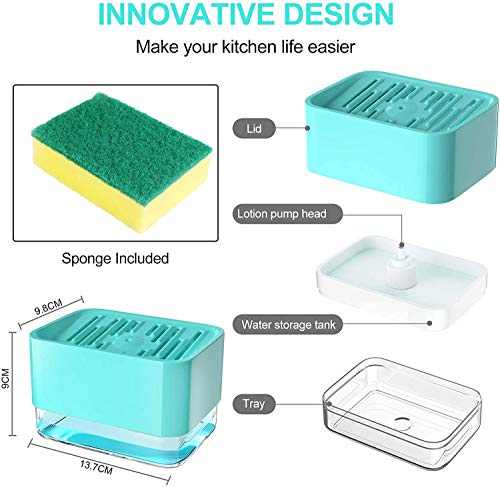 Risparmia tempo: il porta spugna è integrato nella parte superiore del distributore, abbattuto sul disordine del lavandino. Quando pulisci il piatto e hai bisogno di più sapone, basta pompare di nuovo. Non dovrai più fermarti per afferrare la bottiglia di sapone.