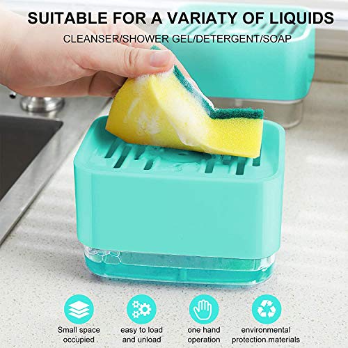 Dispenser Sapone Liquido Manuale con Spugna, 3 in 1 per Piatti Dispenser Detersivo Piatti Porta Spugna Erogatore Sapone Piatti Distributore Detersivo Piatti