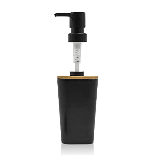 Dispenser Sapone Nero Opaco con Dettagli in Legno di bambù, Design Moderno, capacità 350 ml