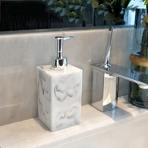 STILE ELEGANTE: il design in marmo nordico, elegante e generoso, aggiunge un tocco di raffinatezza al tuo spazio e ridefinisce il tuo arredamento. Aggiungi brillantezza ed eleganza al tuo bagno con questo dispenser di sapone in marmo bianco indiano.