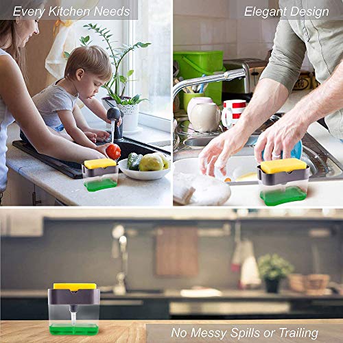 Dispenser di Sapone in Spugna, Dispenser Sapone con Porta Spugna, Pompa Sapone 2 in 1, Manuale Durevole ABS Dispenser di Detersivo per Piatti con La Spugna per Cucina, Bagno (Grigio)