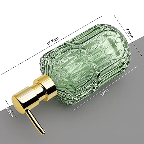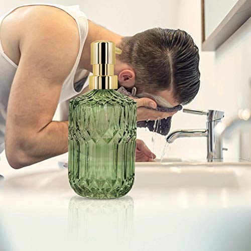 Dispenser di sapone in vetro, 400 ml di liquido lavamani trasparente ricaricabile detersivo per piatti bottiglia per lozione shampoo con pompa per bagno cucina lavanderia (verde)