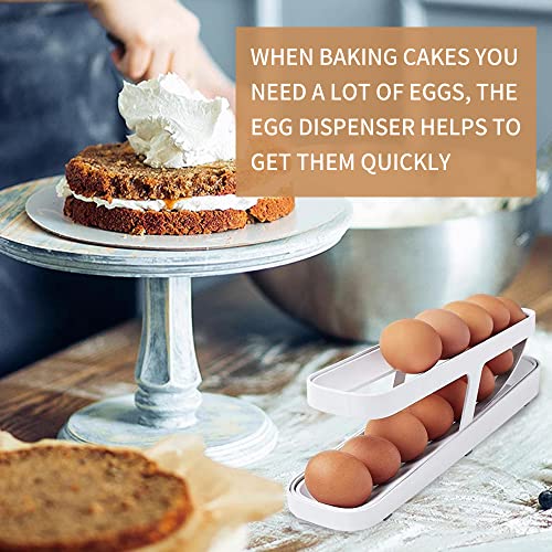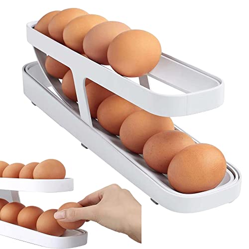 Dispenser di uova a 2 livelli, supporto per uova, contenitore organizzatore di uova, dispenser automatico di uova rotolanti per il rack di stoccaggio del frigorifero, vassoio di uova salvaspazio