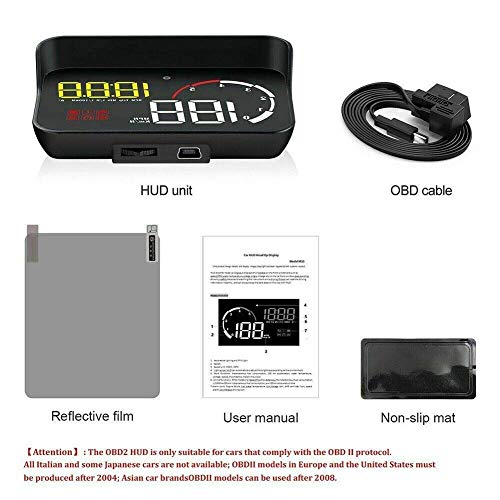 【Cosa ottieni】 - Il pacchetto include: 1 * unità HUD, 1 * cavo OBD, 1 * tappetino antiscivolo, 1 * pellicola riflettente, 1 * manuale utente. Qualsiasi problema, non esitate a contattarci, forniremo ai clienti soluzioni soddisfacenti.