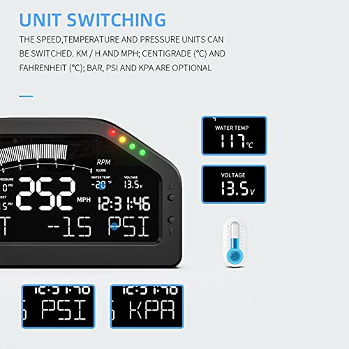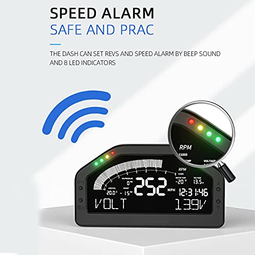Qualità Premium: Cruscotto da corsa per auto Visualizza in modo intelligente RPM, velocità, pressione dell'olio, temperatura dell'olio, temperatura dell'acqua, boost, rapporto carburante aria, EGT e tensione. Dotato di schermo LCD a basso consumo e 8 luci LED con funzione di indicatore sequenziale. Pregevole fattura, resistenza all'usura e alla corrosione, la durata è più lunga.