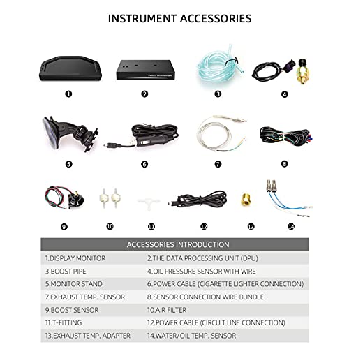 Dettagli del prodotto: Il pacchetto include 1 monitor display, 1 convertitore, 2 manuali, 4 accessori per viti, 8 cavi di collegamento, 2 cavi di alimentazione, 1 tubo flessibile, 1 staffa, 7 sensori, 2 cavi di collegamento, 1 x coperchio, 1 x connettore, 1 x connettore a T, 4 x estremità del cavo e 4 x tubi termorestringenti.