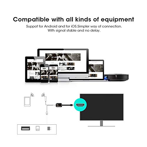 ✔ Wireless e connessione facile - Display wireless, mirroring dello schermo wireless, mirroring a schermo intero adatto per smartphone iOS/Android, adatto per HDTV o tablet con proiettore, molto adatto per presentazioni PPT e film su grande schermo.