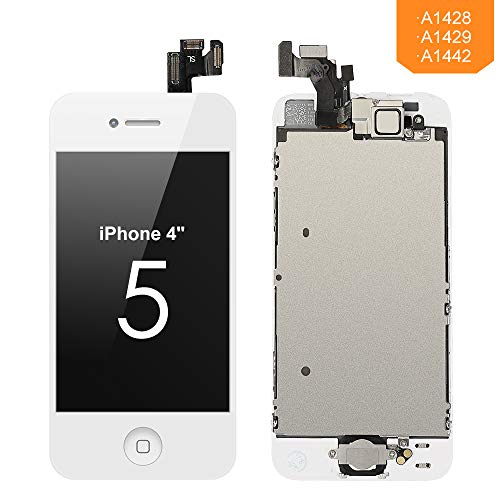 Display per iPhone 5 Schermo Touch Screen 4,0"LCD Vetro Bianco Digitizer Parti di Ricambio (con Home Pulsante, Fotocamera, Sensore Flex) Kit Smontaggio trasformazione Completo di Ricambio