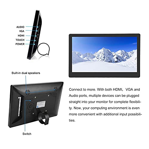 【Ampia Compatibilità】-- Il monitor portatile ha una varietà di interfacce che supportano gli ingressi VGA / HDMI /3,5 mm, può adattarsi a quasi tutti i dispositivi sul mercato, inclusi PC, CCTV, videocamere, computer.