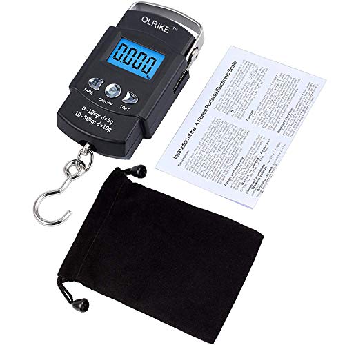 Display LCD retroilluminato Olrick scala pesca 49,9 kilogram/50kg Portable Electronic Balance Digital Fish Hook Hanging scale con nastro di misurazione