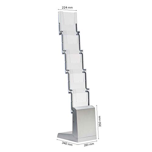 Materiale: l'Portadepliant da terra piehevole DIN A4 è realizzato in alluminio e plastica trasparente.