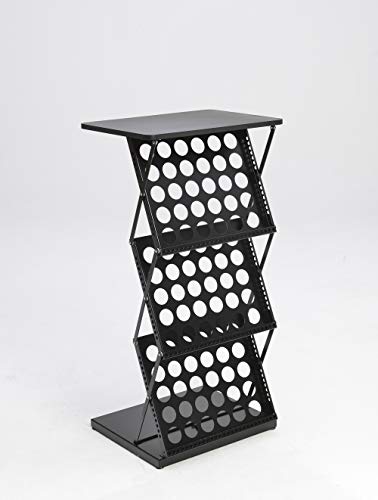 DISPLAY SALES - Porta depliant da Terra Nero | Banco Mobile Pieghevole in Metallo con 3 Ripiani per cataloghi, volantini o opuscoli | Utilizzabile Anche Come leggio