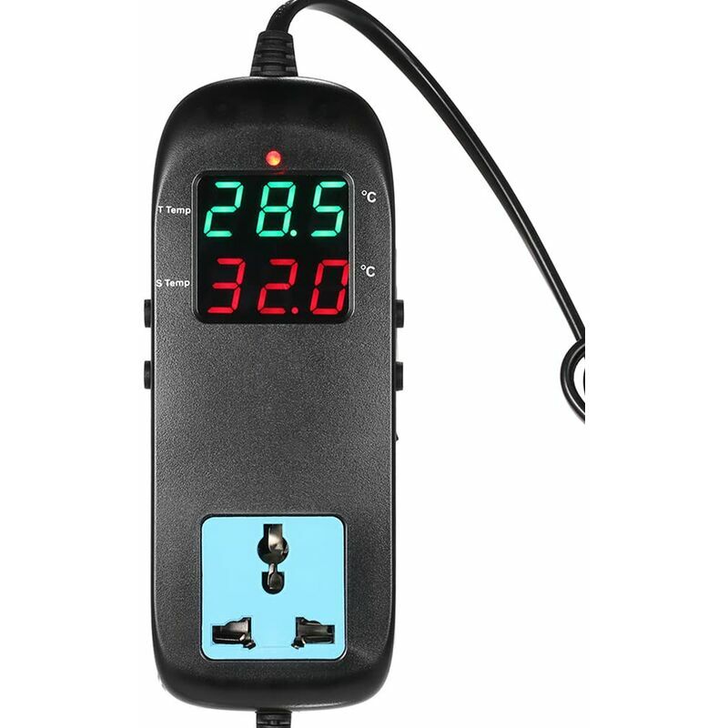 Un utile regolatore di temperatura per controllare la temperatura in modo intelligente. Con doppio schermo a LED ampio e chiaro per una migliore leggibilità. Ampio intervallo di misurazione della temperatura: 40~120 ℃ (-40 ~248℉). Raffreddamento e riscaldamento controllati, dotati di cavo di alimentazione. Funzione di protezione ritardata.