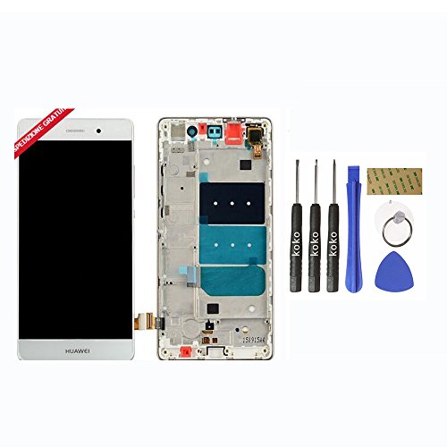 Display lcd + touch screen + frame vetro vetrino huawei p8 lite bianco white ricambio completo con kit riparazione biadesivo