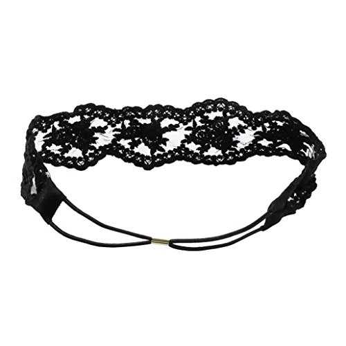 DISPLAY08 donne carino tessuto pizzo stretch ampia fascia romantico Hairband Headwrap nero