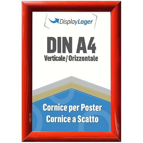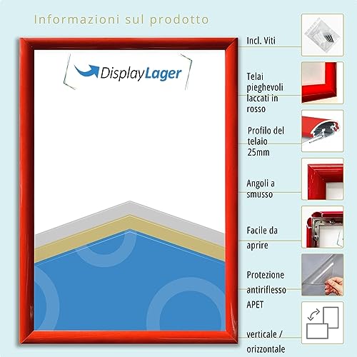 DisplayLager - Cornice a Scatto da 25 mm, Profilo in Alluminio e Disco di Protezione antiriflesso e Materiale di Fissaggio (A4, Rosso)