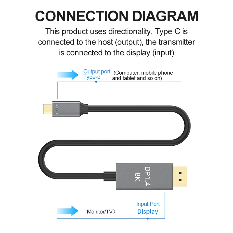 USB C to displayport Cable 8k 60HZ Thunderbolt 3 4K 144HZ type-c 3.1 to DP 1. 4 adapter pd fast charger for Macpro Display HUD