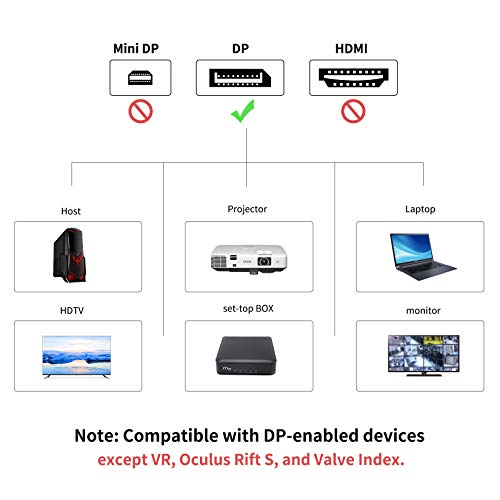 Risoluzione 4K: con supporto per risoluzioni fino a 4K/60Hz e 2K fino a 144Hz. (Nota: Pls non collegare un cavo adattatore di conversione del segnale come DP a HDMI o DP a VGA al cavo. Non funziona né funziona bene.)