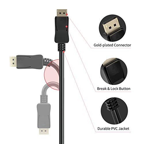 Prestazioni superiori: il cavo di prolunga DisplayPort è costruito con connettori placcati in oro per ridurre la ruggine nel tempo ed è conforme agli standard VESA. Il connettore DisplayPort con chiusure fornisce una connessione sicura e il pulsante di rilascio deve essere premuto prima di scollegare.