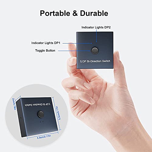 DisplayPort Switch Bidirectional, DP 1.4 DisplayPort Splitter 2 in 1 out/1 in 2 out, DP Switcher 8K@60Hz, 4K@120Hz, 2K@144Hz, 1080P@240Hz, con Indicatore LED per PC Laptop Monitor Proiettore TV