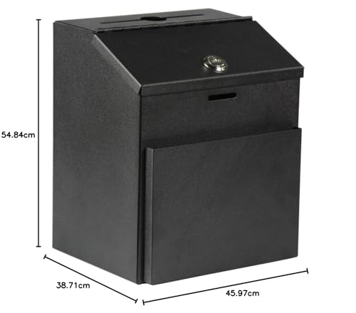 DISPLAYS2GO suggerimenti, con serratura per montaggio a parete o uso occasionale, coperchio con cerniera, tasca per donazione forme o buste Black