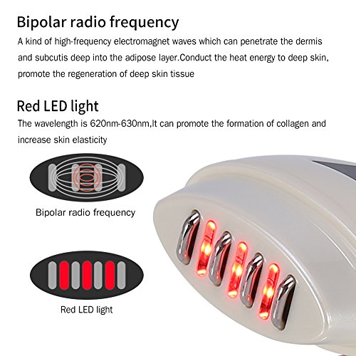Facilita la formazione di collagene, aumenta l'elasticità della pelle: lo strumento rf beauty è in grado di produrre luce led rossa. la lunghezza d'onda della luce led rosso è 620nm-630nm, può facilitare la formazione di collagene e aumentare l'elasticità della pelle. ha un grande effetto nello stimolare il metabolismo del corpo e l'attivazione di tessuto cellulare per ridurre i pori, liscia linee sottili e migliorare la pelle.