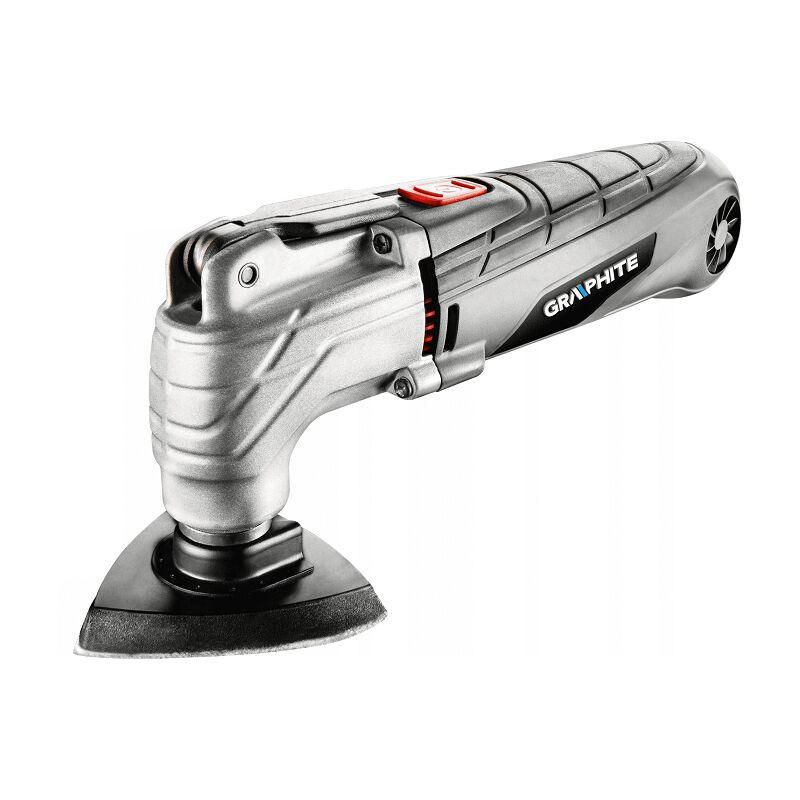 Dati tecnici: Tipo di alimentazione: elettrica Potenza: 300 W Regolazione della velocità: sì Velocità max: 21000 giri/min. Velocità: 15000 giri/min Angolo di inclinazione sinistra/destra: 1,4 ° Angolo di oscillazione: 2,8 ° Accessori compatibili: OIS aperto Peso: 1,45 kg Il dispositivo multifunzione GRAPHITE (rif. n. 59G021) è un prodotto di alta qualità con 6 intercambiabili Consigli di lavoro per tagliando, levigando o raschiando materiali come metallo, legno o ceramica, il dispositivo da 300 W offre una varietà di applicazioni. L'unico limite è l'immaginazione dell'utente. L'angolo di oscillazione è compreso tra 15.000 e 21.000 oscillazioni al minuto 2,8°. Il dispositivo piccolo e maneggevole ha la possibilità di regolare la velocità. Un altro vantaggio dell'apparecchio è il sistema per la sostituzione rapida e senza attrezzi degli accessori nell'apparecchio. L'alloggiamento degli ingranaggi del dispositivo è realizzato in resistente lega di alluminio, la sua forma pratica e il
