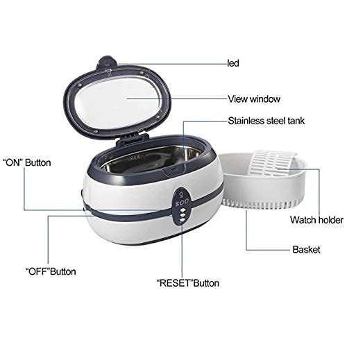 Dispositivo di Pulizia ad Ultrasuoni con Display digitale, serbatoio in Acciaio Inossidabile con cestino, per la casa, da 750 ml