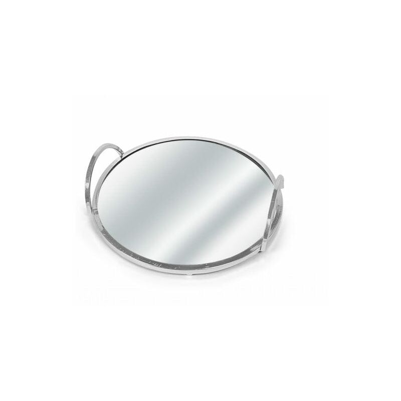 Vassoio specchiato con manici e bordo argento, da esporre nel soggiorno o nella camera da letto oppure all'ingresso, per arredare i mobili di casa. Dimensioni: cm 26 x 6