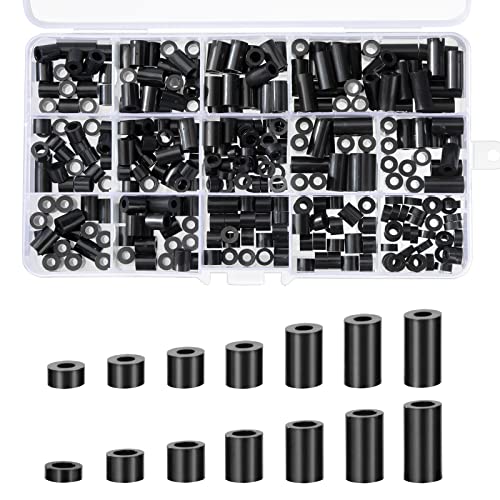 14 misure: Include 14 misure di distanziali rotondi neri, per un totale di 320 pezzi, tutti imballati nella scatola di stoccaggio, facili da usare e da trasportare, per soddisfare le diverse esigenze.