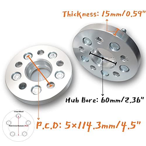 Distanziali Ruote Auto per Lexus HS ES IS RC GS SC UX NX RX LFA GS F Distanziali per Ruote Auto 5 Lug PCD 5X114.3 15MM 20MM Distanziali Ruote (Color: 2PCS 15mm)