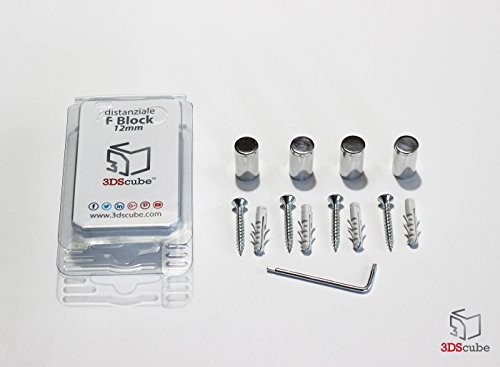 Distanziali per targhe, F Block 12mm blocco del cappuccio con granetto, kit 4 pezzi, alluminio colore Chrome (cromato), blocca pannelli fino a sp. 10mm