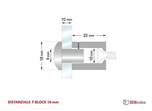 Distanziali per targhe, F Block 18mm blocco del cappuccio con granetto, kit 4 pezzi, alluminio colore chrome (cromato), blocca pannelli fino a sp. 10mm