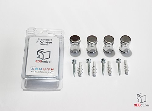 Distanziali per targhe, F Screw 18mm blocco del cappuccio a vite, kit 4 pezzi, alluminio colore chrome (cromato), blocca pannelli fino a sp. 10mm