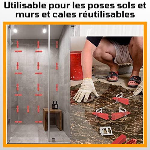 Kit di distanziatori autolivellanti riutilizzabili|1 Pinza e 100 cunei +Sconto sulla quantità e guida all'installazione per le vostre piastrelle in ceramica, pietra, metallo, vetro e terracotta 100 Cu