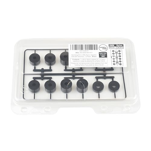 Distanziatori in nylon da 6 mm (M6) Rondelle distanziatori (confezione da 12) 4 x 15 mm, 4 x 10 mm, 4 x 5 mm - Nero