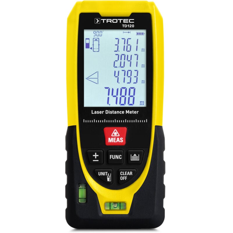 Robusto, compatto e altamente funzionale - il TD120 è il distanziometro ideale per gli utenti con ambizioni professionali e attenti ai costi Con il TD120, gli utenti possono ora fronteggiare il confine tra semi-professionale a professionale. Infatti, anche se il prezzo vantaggioso non lo lascia inizialmente immaginare, gli utenti professionalmente ambiziosi avranno pane per i loro denti con questo distanziometro Trotec. Dotato di un sensore di inclinazione, di una livella digitale e di una livella a bolla orizzontale e verticale, il distanziometro TD120 è in grado di superare ostacoli e misurare angoli e altezze;