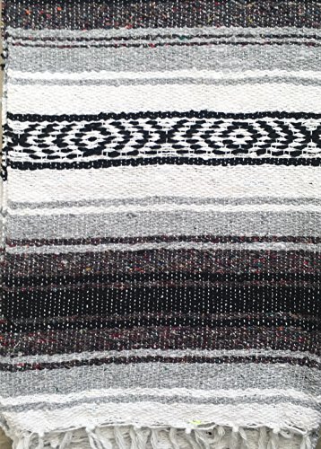 DistinctLook Coperta messicana Falsa coperta coperta in 6 colori con trama a mano in filato riccio per yoga, meditazione, campeggio, picnic, festival (grigio con pois colorati)