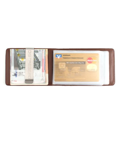Distressed Porta-carte di credito con fermasoldi in acciaio inox, 10 scomparti trasparenti marrone marrone 11cm x 7cm