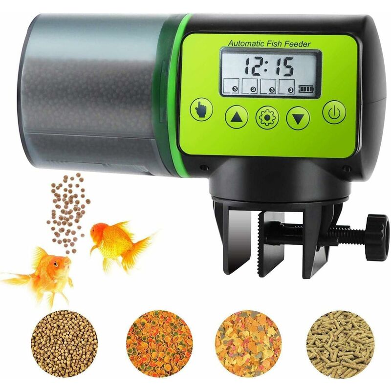 Programmabile: Il timer consente di configurare fino a quattro pasti automatici al giorno. È possibile programmarlo per nutrire in qualsiasi momento del giorno o della notte e configurare un alimentatore semplice, doppio o triplo allo stesso tempo, puoi anche nutrirsi manualmente e godersi le gioie di nutrire il tuo pesce da solo. Design anti-umidità: la tramoggia resistente all'umidità mantiene il cibo secco, non si bagnano o non si bloccano. Si adatta alla maggior parte dei tipi di cibo, compresi fiocchi, granuli o briciole. Due diversi metodi di fissaggio: Il distributore ha 2 metodi di installazione tra cui scegliere. Uno è collegare il distributore alla parete del serbatoio utilizzando il supporto. L'altro è quello di attaccare il distributore con l'adesivo biadesivo incluso sul coperchio del serbatoio. Capacità di grande capacità: Con una capacità di 200 ml, le sue grandi dimensioni possono contenere abbastanza cibo per mantenere il pesce ben nutrito durante la tua assenza.
