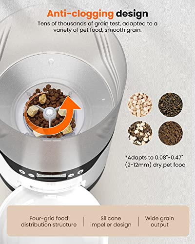 【Alimentazione Flessibile】 Distributore automatico cibo gatti può essere impostato da 1 a 4 pasti al giorno (fino a 12 porzioni per pasto). Distributore automatico cibo gatti il cibo in tempo secondo un programma prestabilito. Ciò non solo consente agli animali domestici di mangiare in tempo, ma impedisce anche efficacemente agli animali domestici di mangiare troppo, il che favorisce lo sviluppo di buone abitudini alimentari.