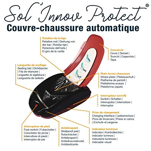 Distributore di copriscarpe Eco (sovrascarpe su misura), ideale per lavori - passaggio sporco ecc. / Funzionamento autonomo su batteria al litio ricaricabile - "Pesca" 1 Rlx in dotazione.