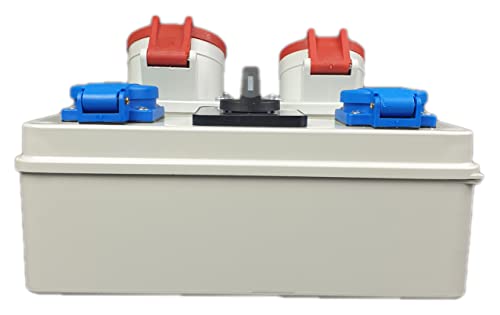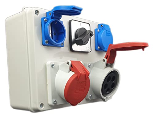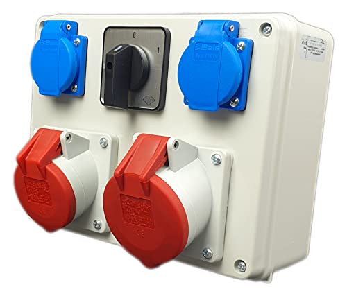 Distributore di corrente da cantiere CEE 16A 32A 5P, 2x Schuko con interruttore principale 0-1. Distributore a parete CEE 400V e Schuko 230V in un unico alloggiamento. Prese BALS IP44