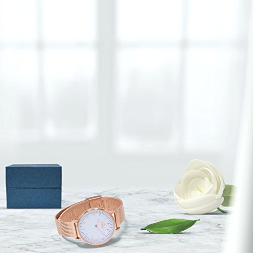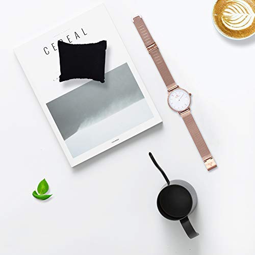 District, orologio da donna, edizione London Elegance, ultra sottile, in maglia d'acciaio inox, cinturino in oro rosa, orologio da polso al quarzo di lusso, semplice, design casual, quadrante nero, orologio da donna per abito elegante, 32 mm